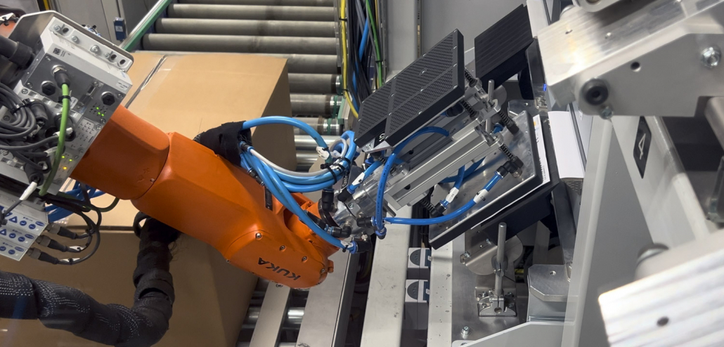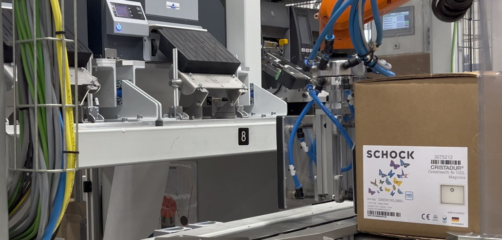 Schock GmbH – Spülen und Armaturen – relies on the ILP-4200 Peeler from KOMDRUCK for its fully automated robotic labeling process.